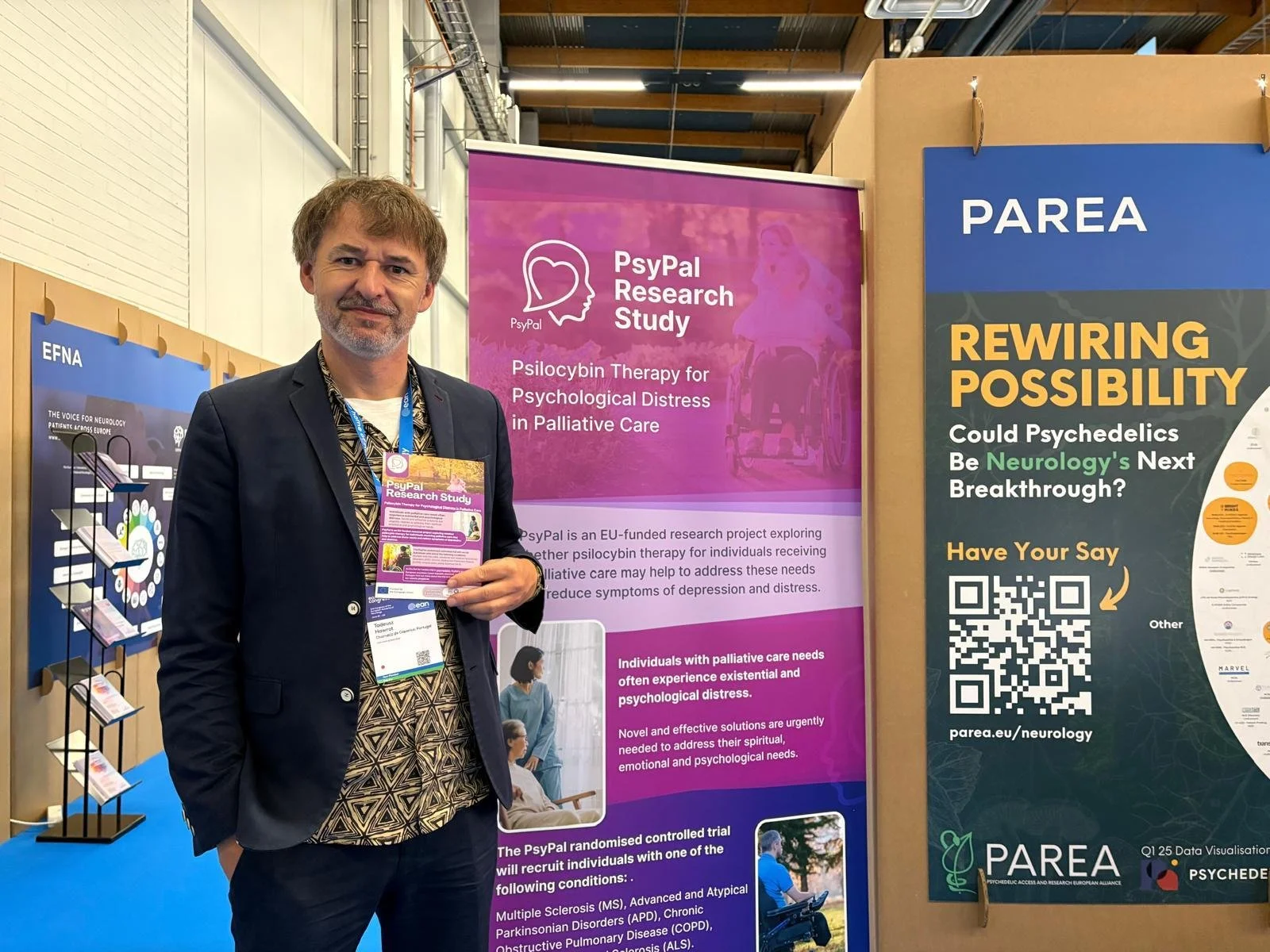 As part of the EAN’s Scientific Theatre, we presented the PsyPal trial—the first EU-funded clinical trial of psilocybin-assisted therapy, targeting four life-limiting conditions, including three neurological diagnoses: amyotrophic lateral sclerosis, multiple sclerosis, and atypical Parkinson’s.